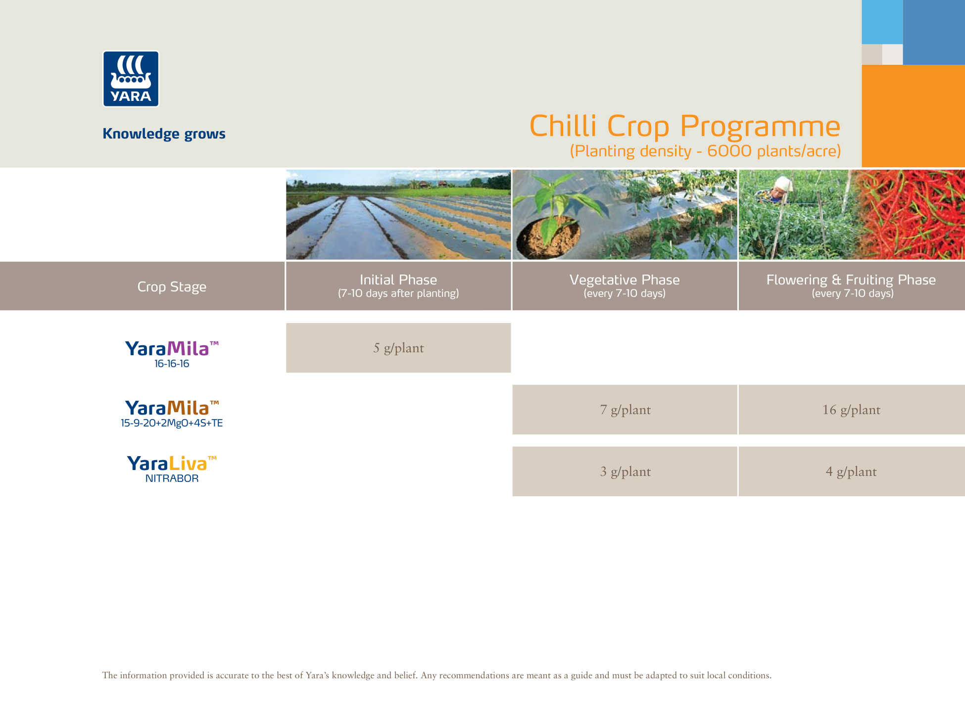 Disclaimer: To the best of Yara’s knowledge and belief the information contained herein is accurate as of the date compiled. However, Yara makes no representation, warranty or guarantee as to the information’s accuracy, reliability, completeness, timeliness and/or use. It is the user’s responsibility to determine the suitability and completeness of such information for the user’s own particular use or purposes. Such information must be adapted to suit local conditions and the user should always read the label for each product before use. Yara does not accept any liability for any loss or damage that may occur from any use of this information.