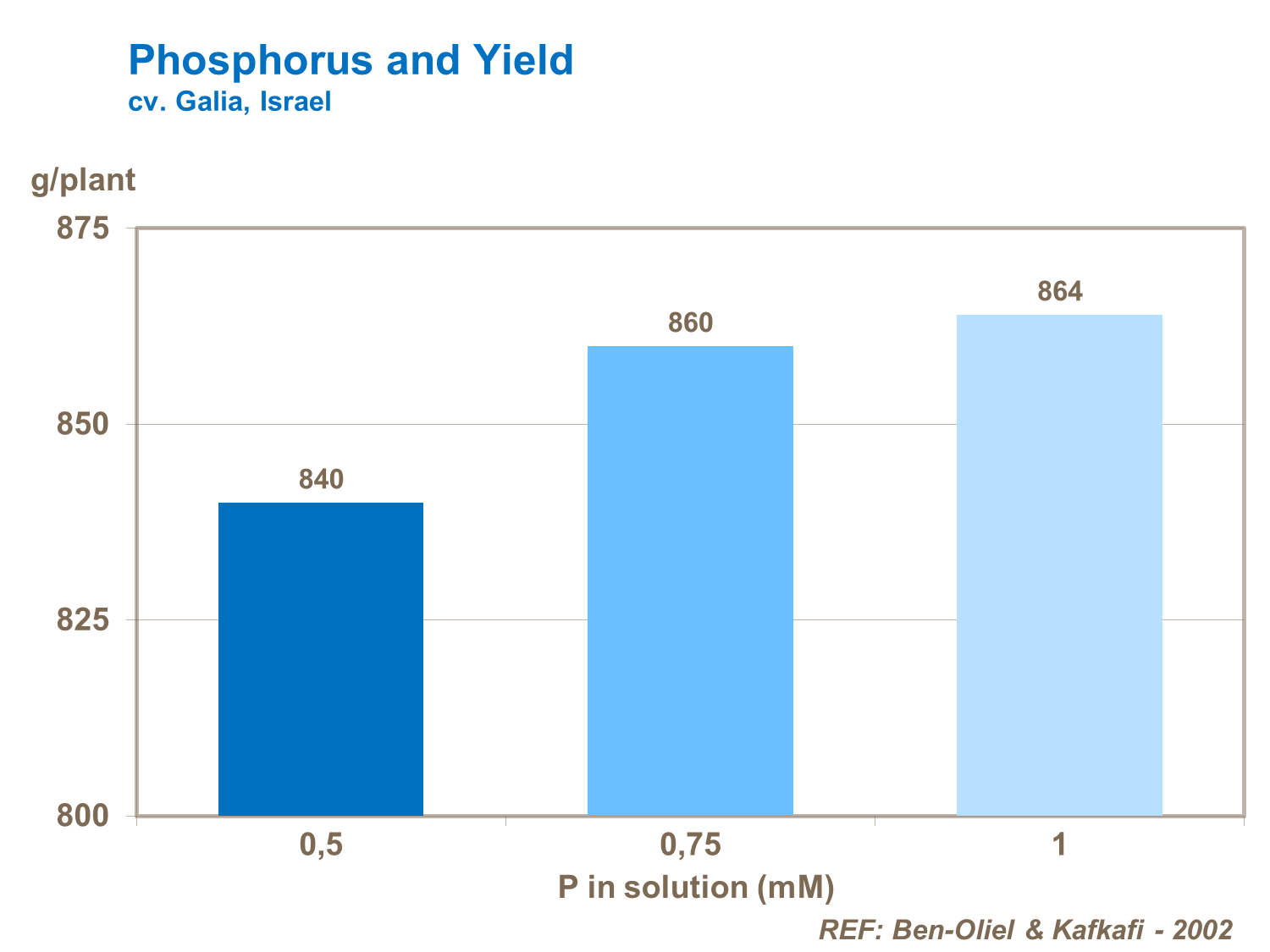 Phosphorus is not needed in large quantities but is required during the season for field grown crops. Phosphorus is used throughout the growth period, ensuring a good start and continued growth of a higher yielding crop, with heavier fruit.