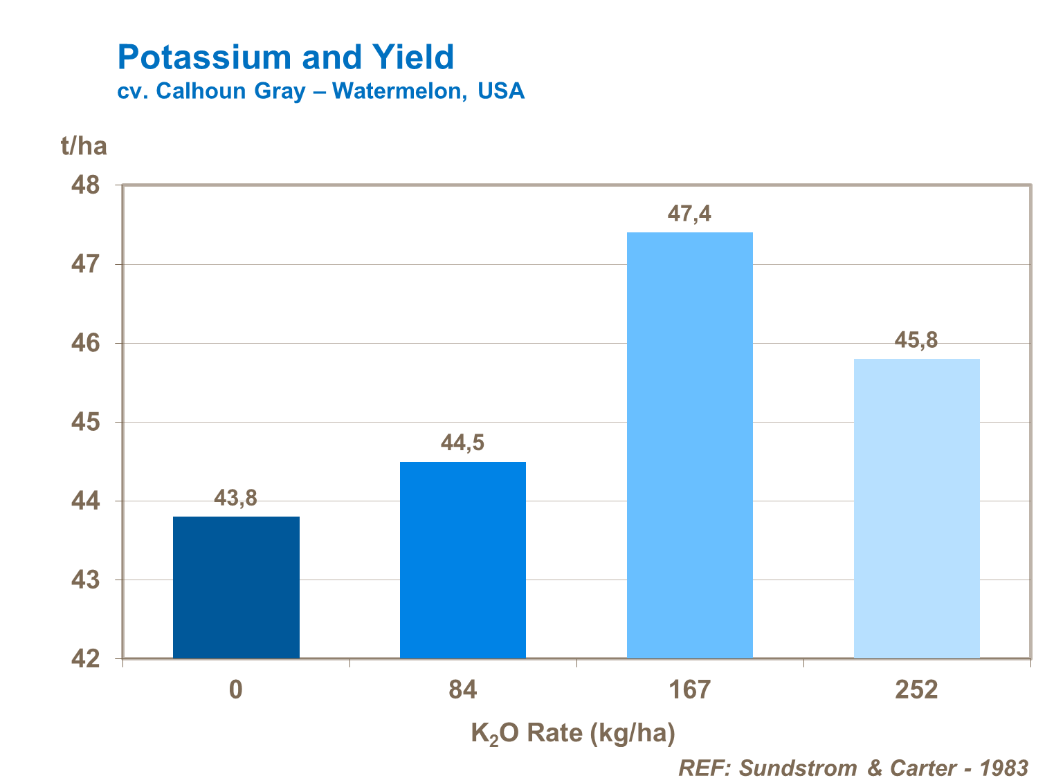 Potassium and nitrogen are key elements in boosting leaf growth and maximizing yield potential. Melons have a relatively high potassium requirement compared to nitrogen. It is thus important that nitrogen-supply is not limiting prior to flowering, or grow and yield will be limited.