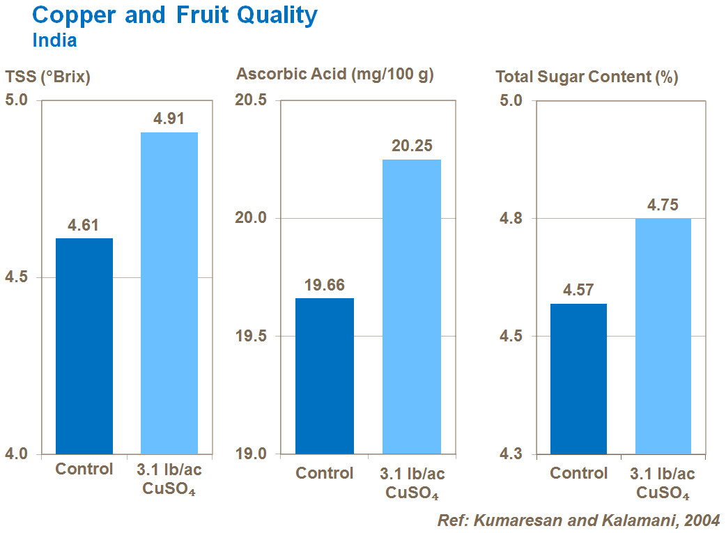 Application of Copper in deficient soils improves fruit quality