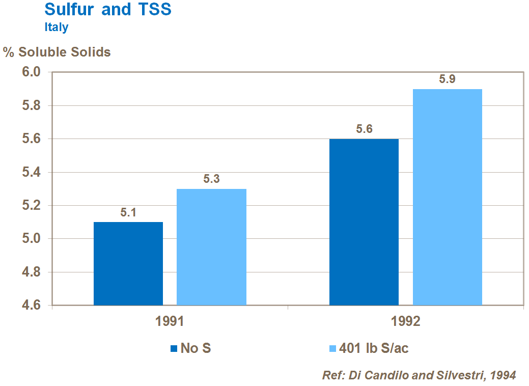 Sulfur increases fruit TSS.