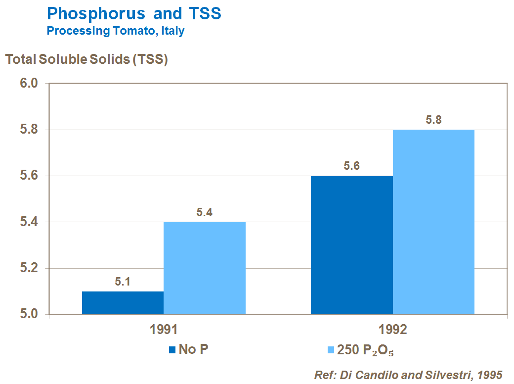Potassium also increases TSS within the tomato. As well as improving processed tomato product quality, this has benefits in terms of improved taste and storage of fresh tomatoes.